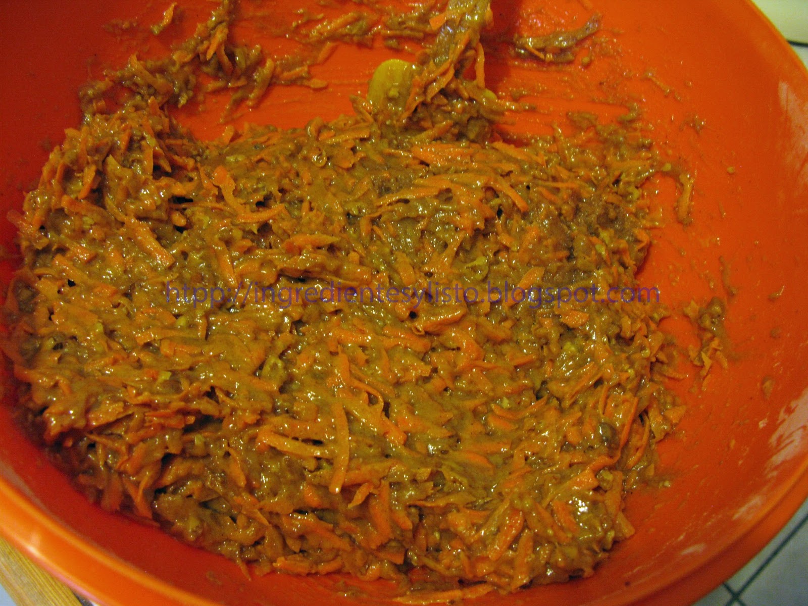 No hay que desesperarse si al principio la masa pareciera mas como masa de galletas que como mezcla para pastel, debe quedar muy espesa. Pero no se debe caer en la tentación de agregarle liquido como leche, porque la misma zanahoria rallada es la que le va a dar la humedad necesaria al pastel con todo el jugo que tiene.